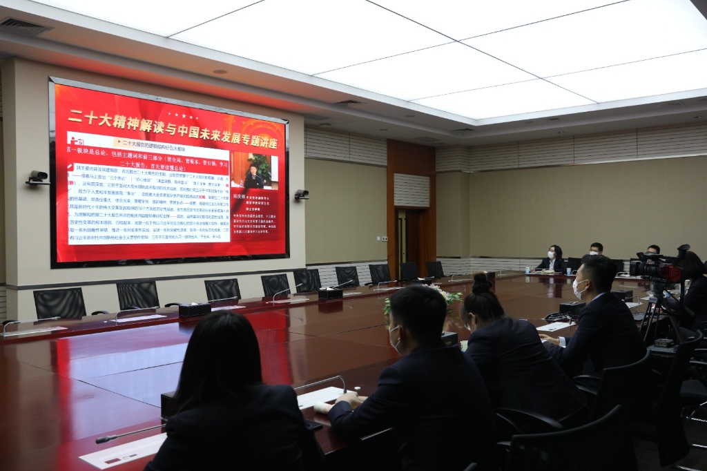 为了更加深入学习贯彻党的二十大精神,持续掀起学习热潮,党委办公室还安排了中国人民大学国际关系学院副院长、中国人民大学中国对外战略研究中心主任金灿荣讲授的《二十大后的中国与世界局势》、原中国人民大学校长刘伟讲授的《二十大报告分析与中国经济未来趋势》等系列精品课程,对党的二十大精神作出深入浅出、系统准确的解读。