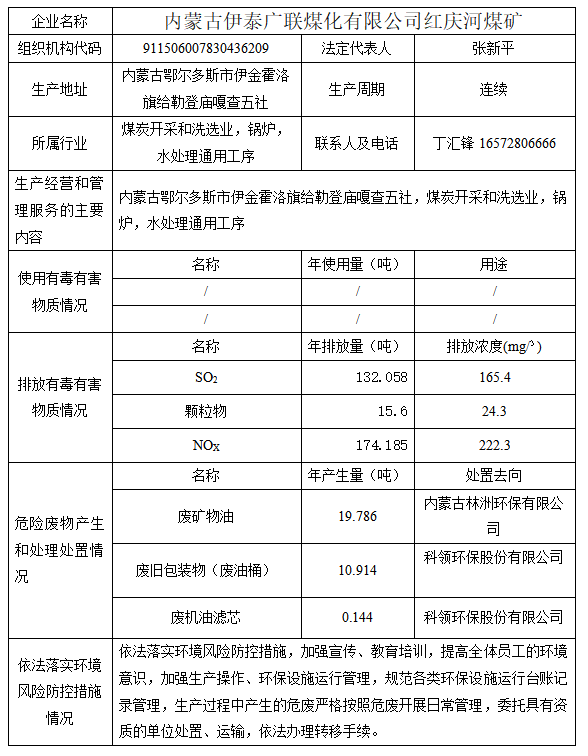 根据《清洁生产审核办法》和《内蒙古自治区清洁生产审核实施细则》规定,内蒙古星空电子广联煤化有限公司红庆河煤矿属于“双有类”企业。